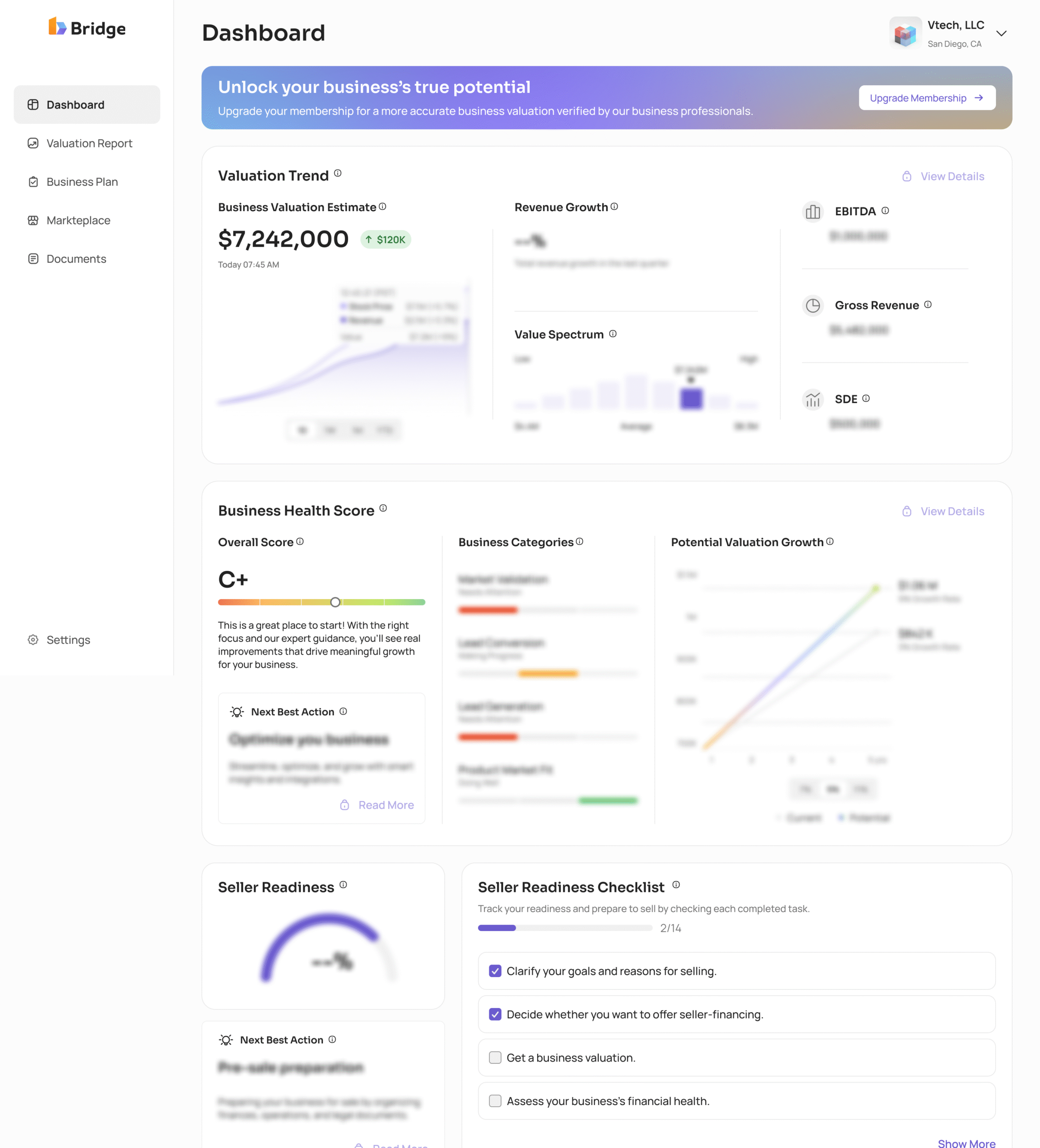 Take the first step towards understanding your business like never before. Create your free account to get a valuation estimate and health score—quick insights that could make a big difference. Do your business a favor and get started today.